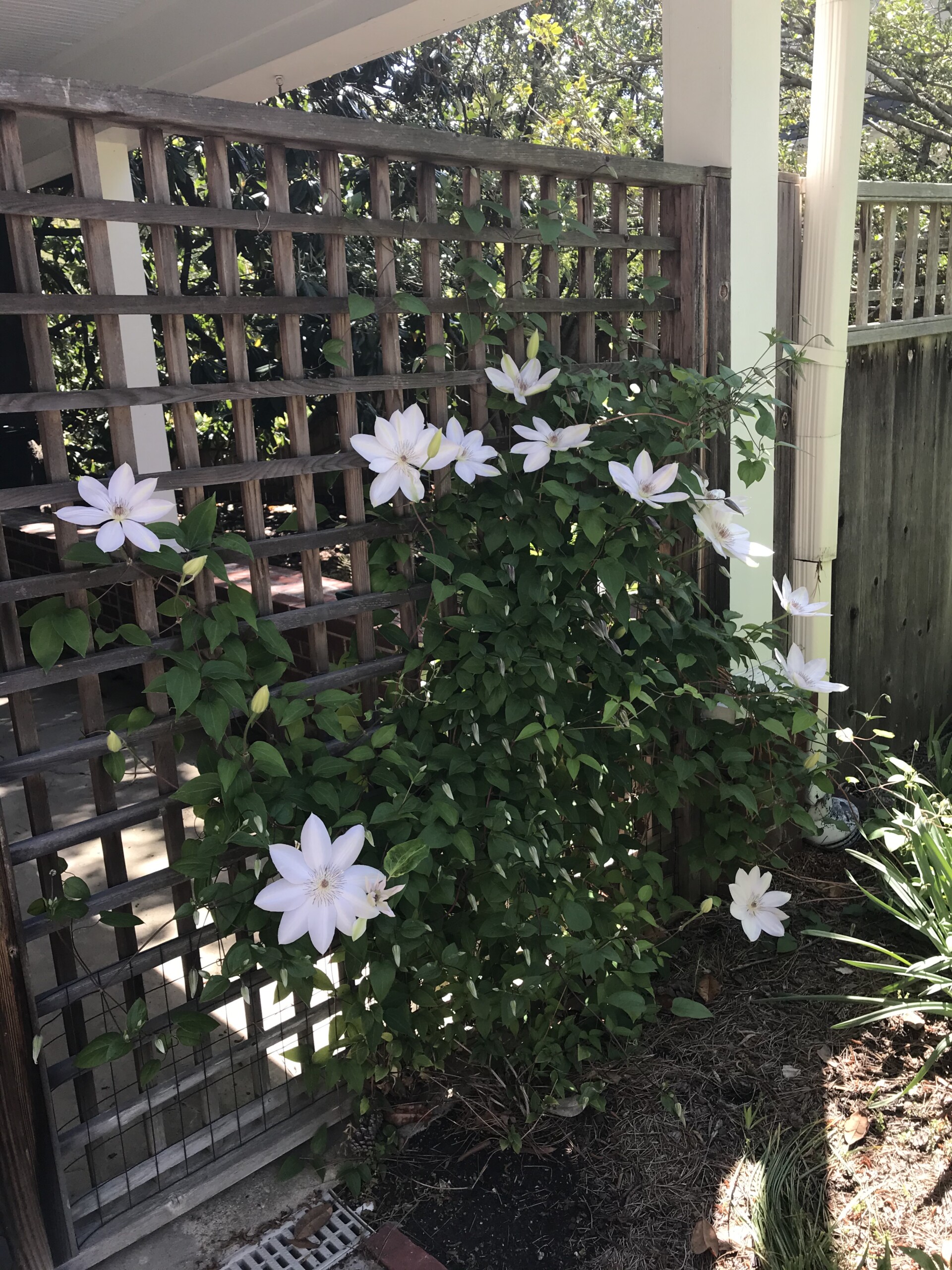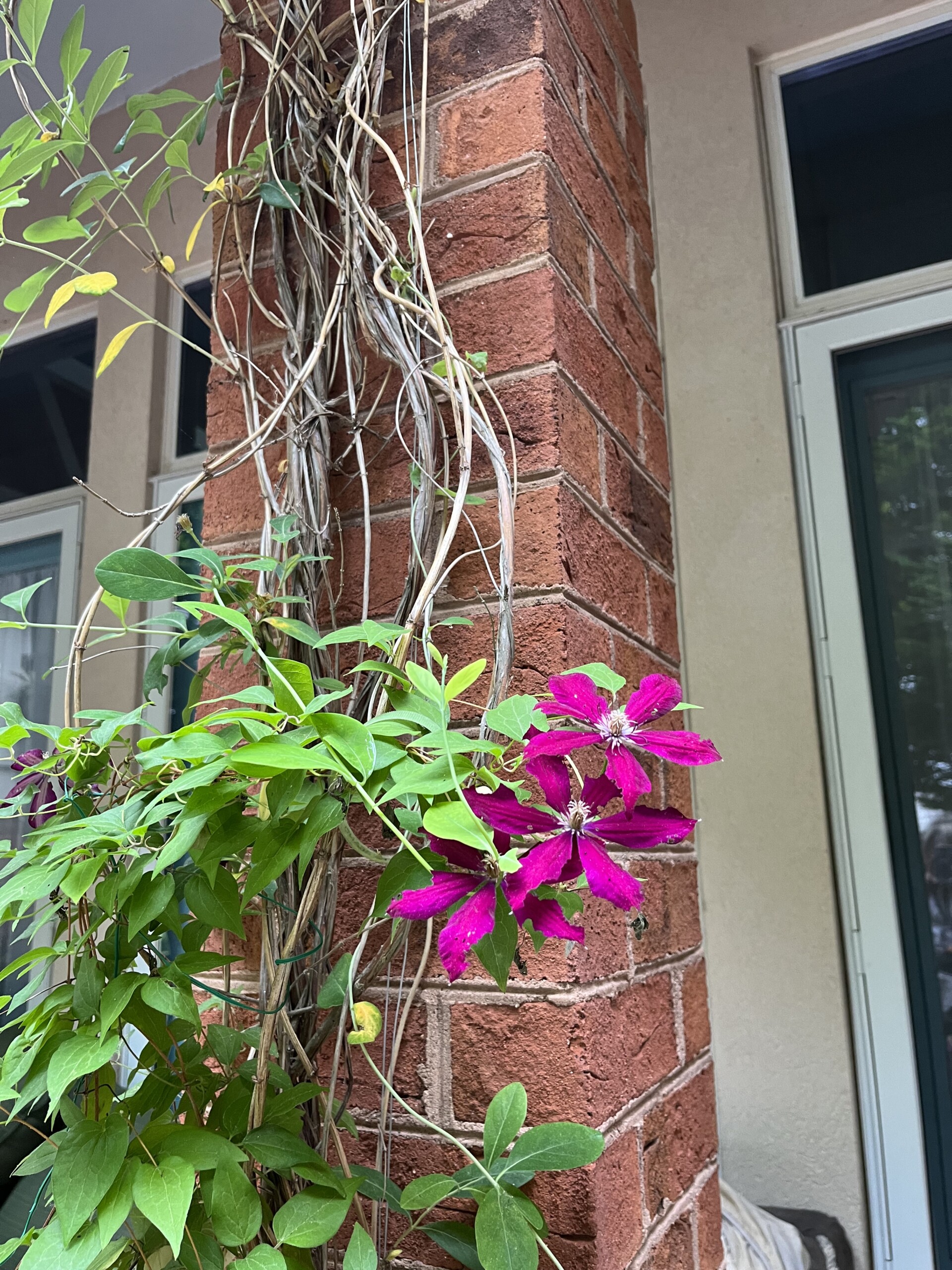 “Head in the sun, feet in the shade” is the motto for this vine. If you don’t have any shade for the base of the plant, use a broken terra cotta pot to shade the bottom roots.
