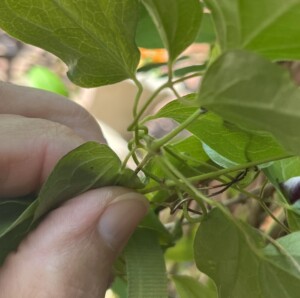 This is a tough plant that travels quickly. It easily holds on to supports like wire, old stems of vines, wooden posts and railings by wrapping and ‘twining’.