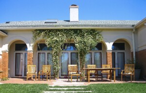 Vines can add a vertical accent to soften a sharp corner or empty space on your house.