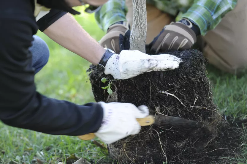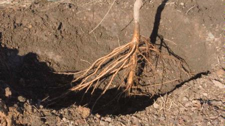 Problem #4: Planting a bare root tree by twisting roots to fit in a small hole. There is no dirt around the tree root to help gauge how big the hole should be.