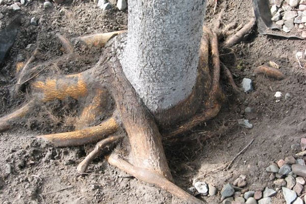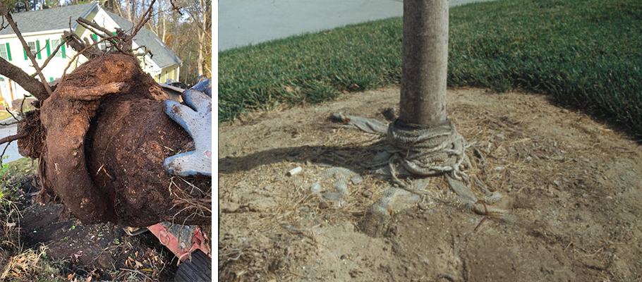 Problem #3: Some container grown trees that have roots growing in a circular pattern. If a plant has been sitting in its pot a few seasons this easily happens.
