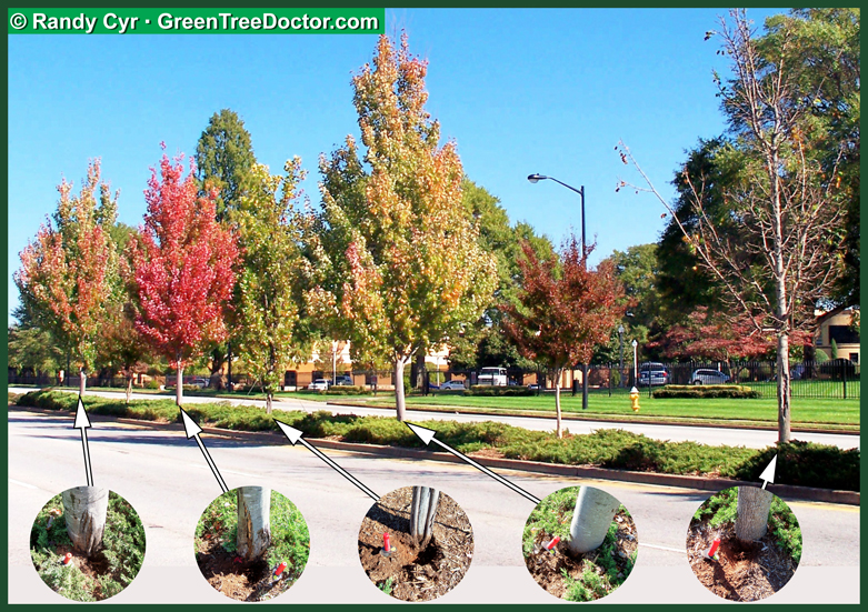 Solution: Plant the tree about 2 inches above ground grade and even higher if it’s a wet area.
