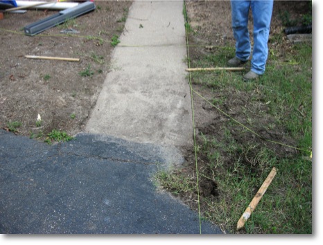 This client had a terrible problem with water running off her steep yard and driveway onto her front walk.  The grade of the walkway was actually below the asphalt driveway.