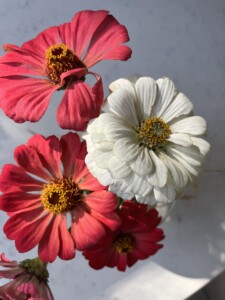 Petal colors have depth and almost look waxy right now. I have given a few rose petals I brought inside a tug, and found they held on to the center of the plant and didn’t drop off as they did in the summer.