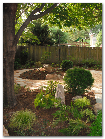I have tried to pull together illustrations from our garden design and execution in demonstrating his points. All but one is ours. None have any flowers in bloom.