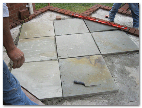 We lay a cement pad, then carefully measured out and lay a brick border. We matched the house brick by using the Shade and Wise Brick Company specialist to help us choose by showing us several brick samples at the site.