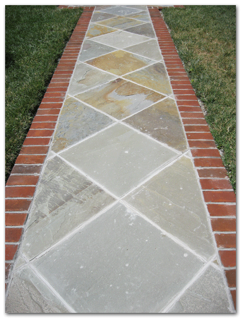This front walk is mortared because the slope of the land creates heavy erosion during a rain. Any dry lay walkway would wash away.
