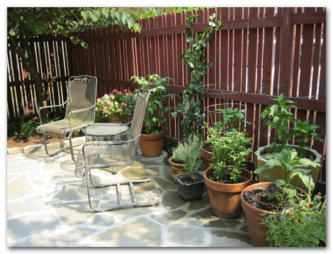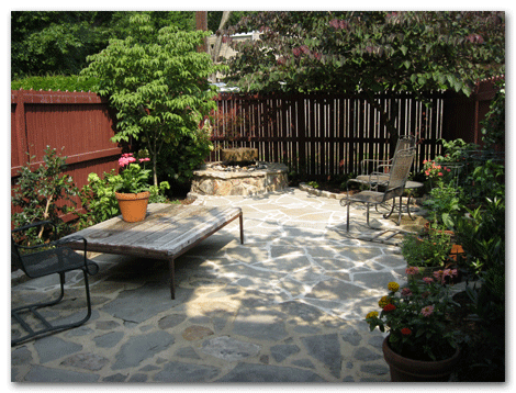 It always amazes me the junk you find even in tiny yards like this. (No reflection on V and M!) We tore up ivy,  revealed lots of old fireplace wood, took out a few shrubs that were over powering the fence line, and  free pruned the crape myrtle and red bud trees.  Power washing the terrace was important to try and make the colors of the stone terraces the same hue of clean.