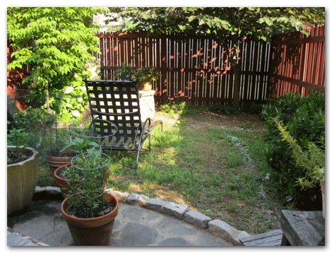 This lovely home in Church Hill had all the elements we love in creating a new garden.  The clients, V and M, and I met on a Friday, painted lines in the dirt Saturday, and had the job done in 6 days before their big gala this past Sunday. O-lay!