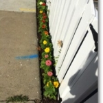 Plantings include some sturdy perennials like salvias, gaillardia, amsonia, lavender and thyme. Perky zinnias border the front picket. We put a ” Peaches and Cream” trumpet coral vine at the base of the pergola to soften the wood accent. This client is already poking in a few fun plants he has found, which is exactly what he was supposed to do!