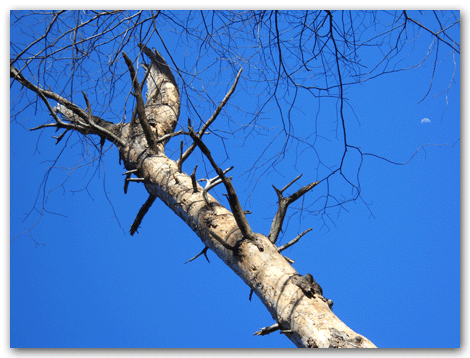 Instead of cutting an unwanted tree to the ground, you can girdle the tree near the bottom, cut off the top canopy and have your own little feeding ground of bugs for our fine feathered friends.