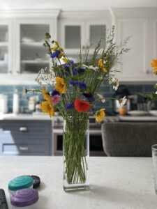 Years ago I was working in a lovely garden. I went inside to speak to my client and saw a beautiful huge bouquet on the kitchen table. I said, “ Where did you get those?” She looked at me in dismay and said “Christie, from your garden!” (Meaning her garden.)