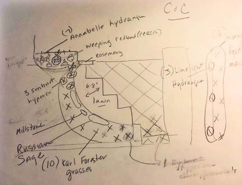 Here is the initial sketch of the stonework and plants.