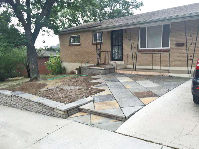 Ta-dah- the terrace ins finished in a funky zig zag edge made of a gorgeous Oklahoma bluestone Carmen chose.