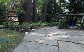 Check any dry lay stone work like terraces or walkways to see if any brick, pavers or natural stone has settled. If any has, try to pry up that one stone and put a layer of sand, polymer or stone dust under it to keep the grade even with no tripping points. Polymer is a great new product which you sweep in between or under stones. It hardens like concrete when you water it in.