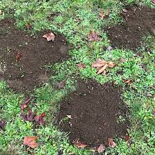 See if there are any places that need more soil. If you moved plants and never filled in the hole from which you moved them, or if your adored dog has dug ankle twisting indentations, or if an area just sank, put a flag or marker there to remember to add a little or alot of soil in the case of these photos below.