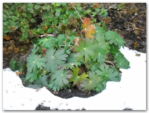 While walking my pup after the last snow, I was amazed to see some perennials that I thought had died back in the winter, popping up and looking the same as they had in the fall. I attribute this to the fact that we have not had a lot of drying winds to cope with, but more melting snows which prevent the foliage from getting brittle and breaking off. Here are a few pictures of plants I often suggest.