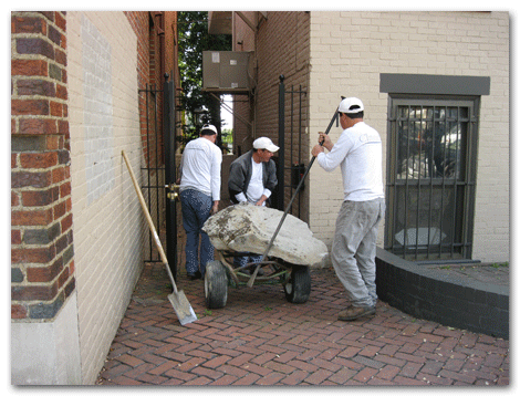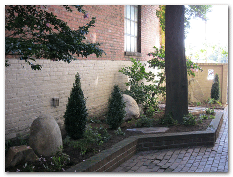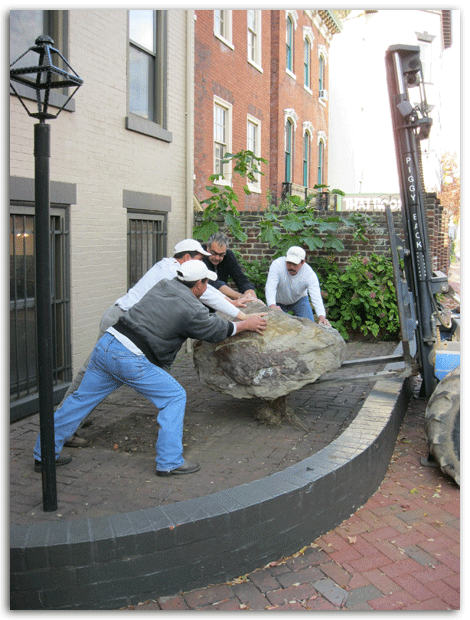 When this renowned artist asked me to landscape his studio on Cary Street.  When I learned that his space had no irrigation or light available, I immediately thought of using boulders.