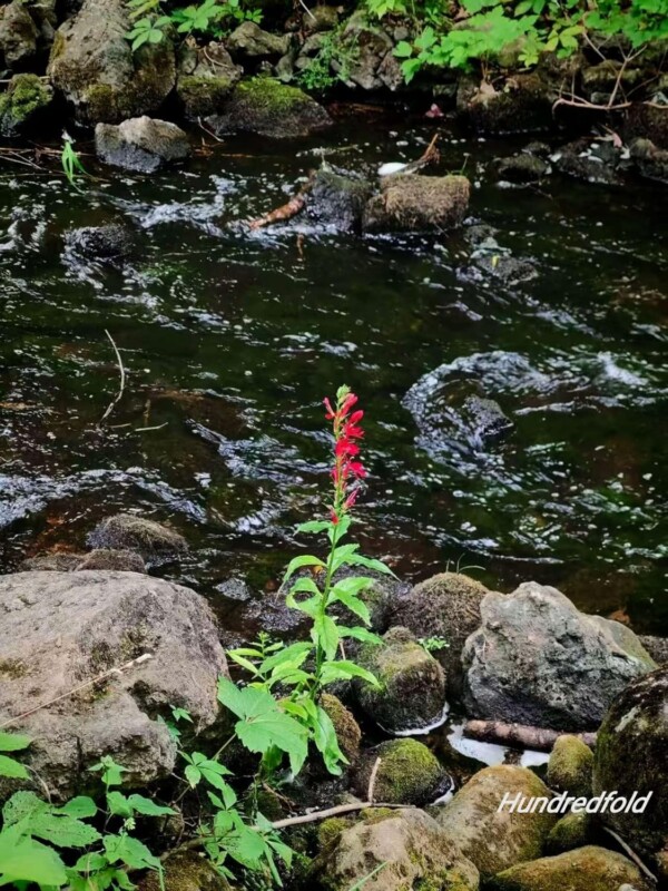 We saw kayakers catching eddys and speed ferry across small ledges. It was pretty impressive to us lake paddlers. Someone in the paddlers’ group said they were practicing for the 1976 Olympics. As I trudged along, laden down with cooking supplies, I notice a beautiful red flower beside the trail. In the midst of wet cloudy conditions, it was a startling surprise. I asked our 60 year old, eccentric counselor what it was, and she replied, “That’s a cardinal flower, it’s on the conservation list.” Little did I know, that flower would stay in my mind’s eye for 20 years and that I would covet it as a gardener and landscaper.