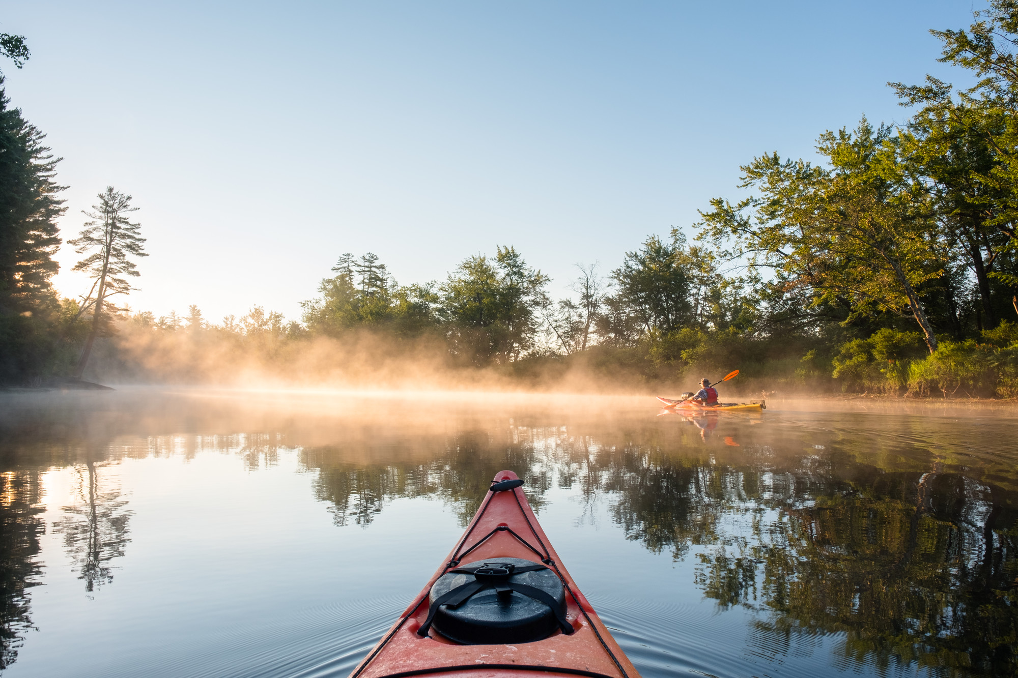 Along the way we had to pass along a swift running narrow section of the Raquette River. The narrow section of the river ran colder than the land so a thick mist rose up from the water.