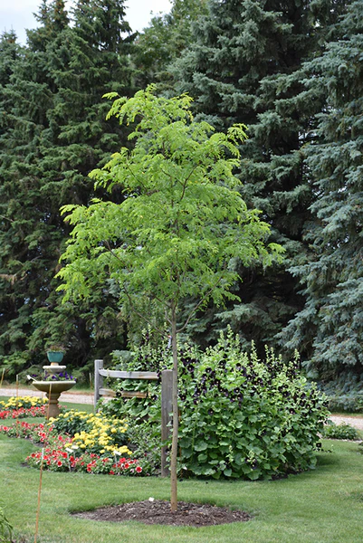 ‘Street Keeper” is tolerant of urban pollution, compacted soil, and a variety of moisture conditions that make it well suited for challenging city environments. The leaves have small delicate fern-like foliage that turns yellow in the fall. After defoliating, the tree leaves don’t need a lot of leaf raking.